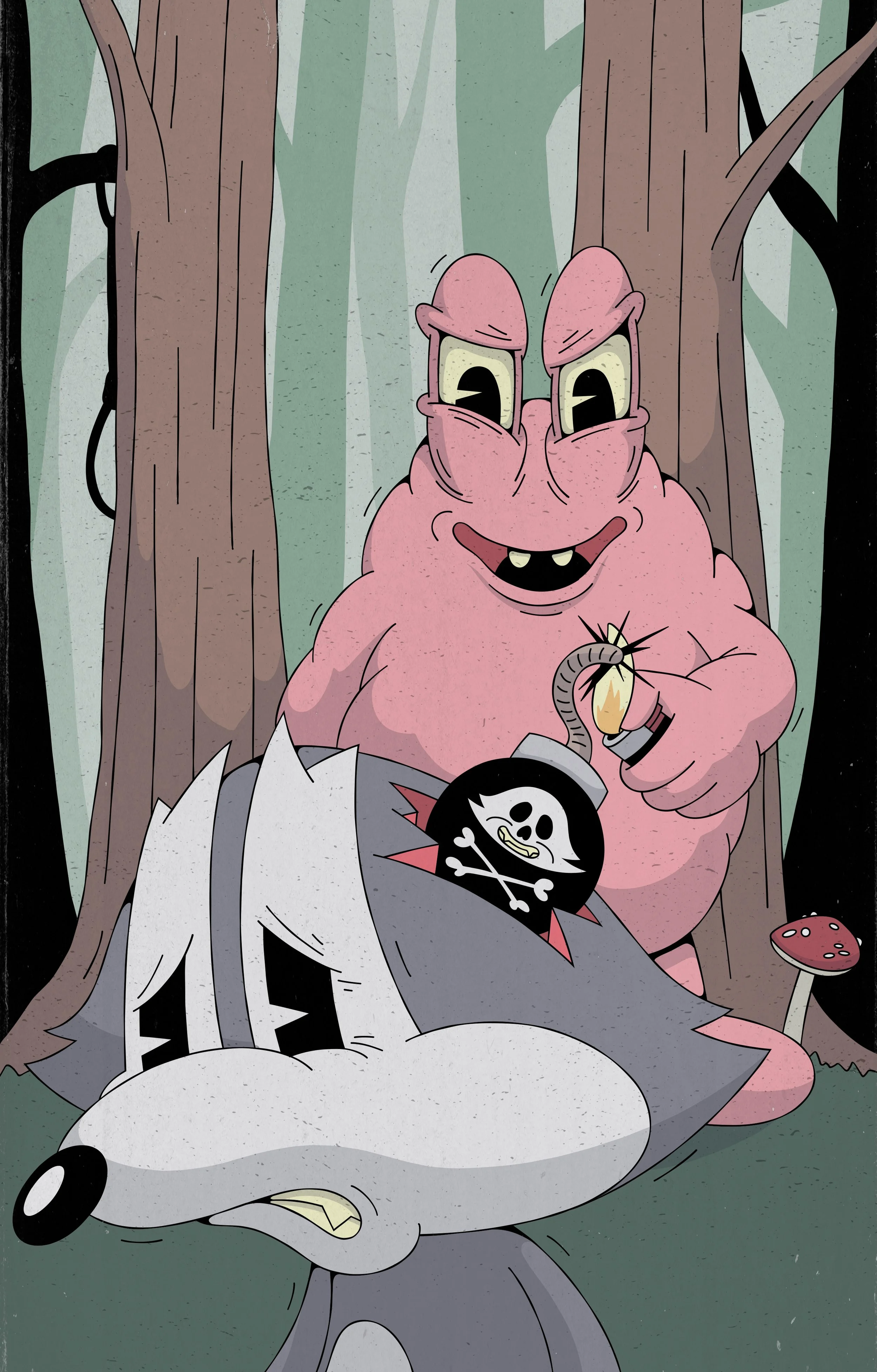 Beim Anblick des jugendlichen Raubtieres wurde dem Esel sofort sterbensbang. Umgehend schnappte er sich das Gehirn, schleuderte es wieder auf seinen Rücken und flüchtete in die Nacht. Verschreckt blieb Toni stehen.